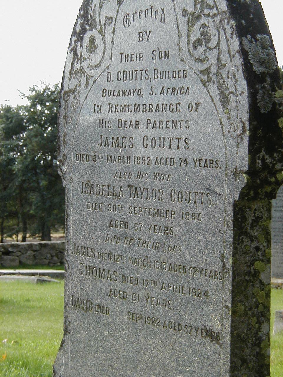 Genealogy of James Coutts and Isabella Taylor.